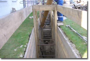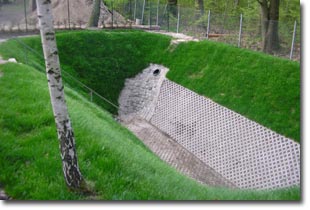 Regenwasser-Zulauf, Neubau einschließlich Abdichtung des Wasserlaufs mit Ton-Elementen |