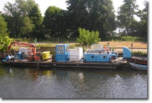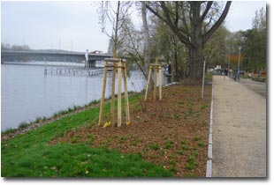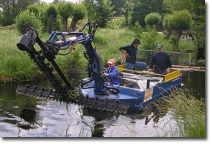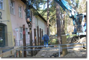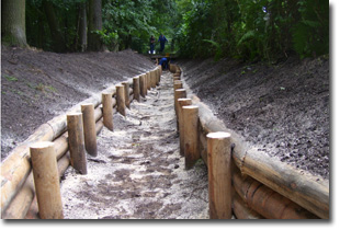 Neu-Profilierung eines vorhandenen Fließgewässers II. Ordnung, Böschungssicherung mit Stangenverbau und Rundholz-Pfählen |
